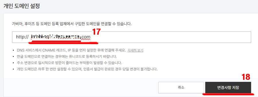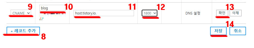 10번 - 하위 블로그 주소 입력(하고자 하시는 주소 입력해 주시면 되어요.)
