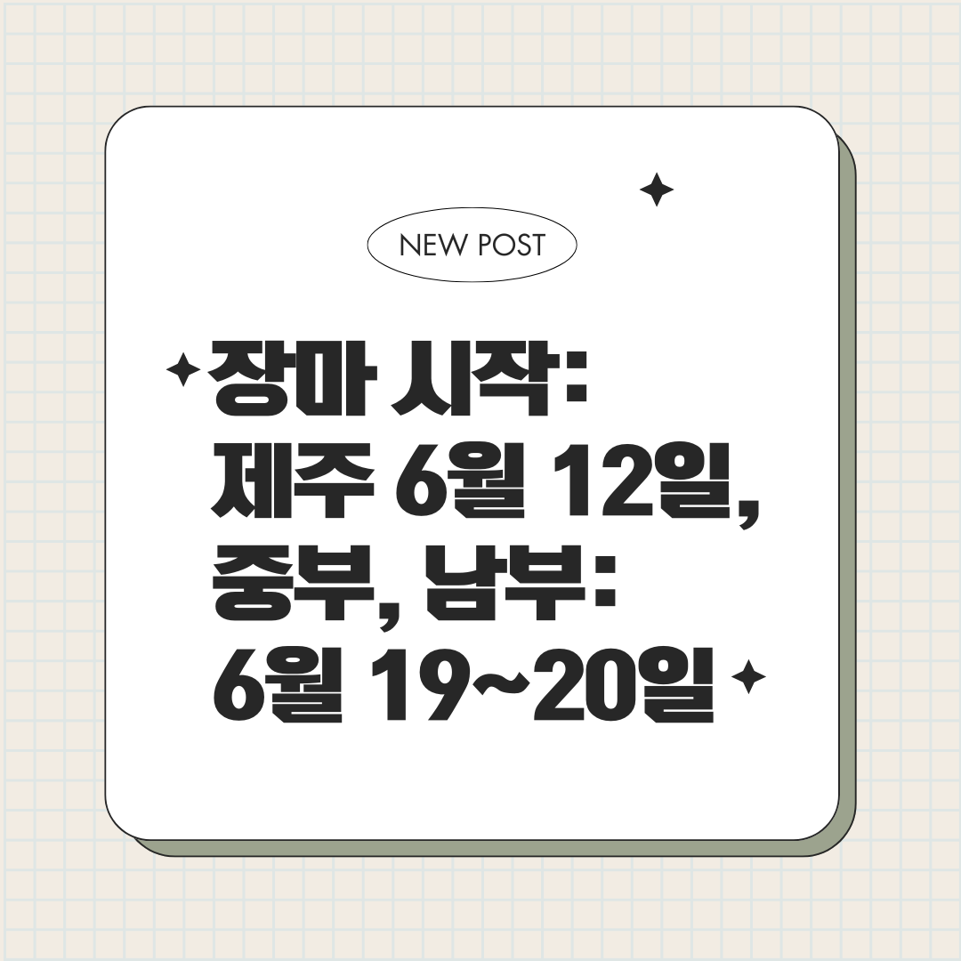 - 장마 시작은 제주가 6월 12일, 중부와 남부는 6월 19~20일