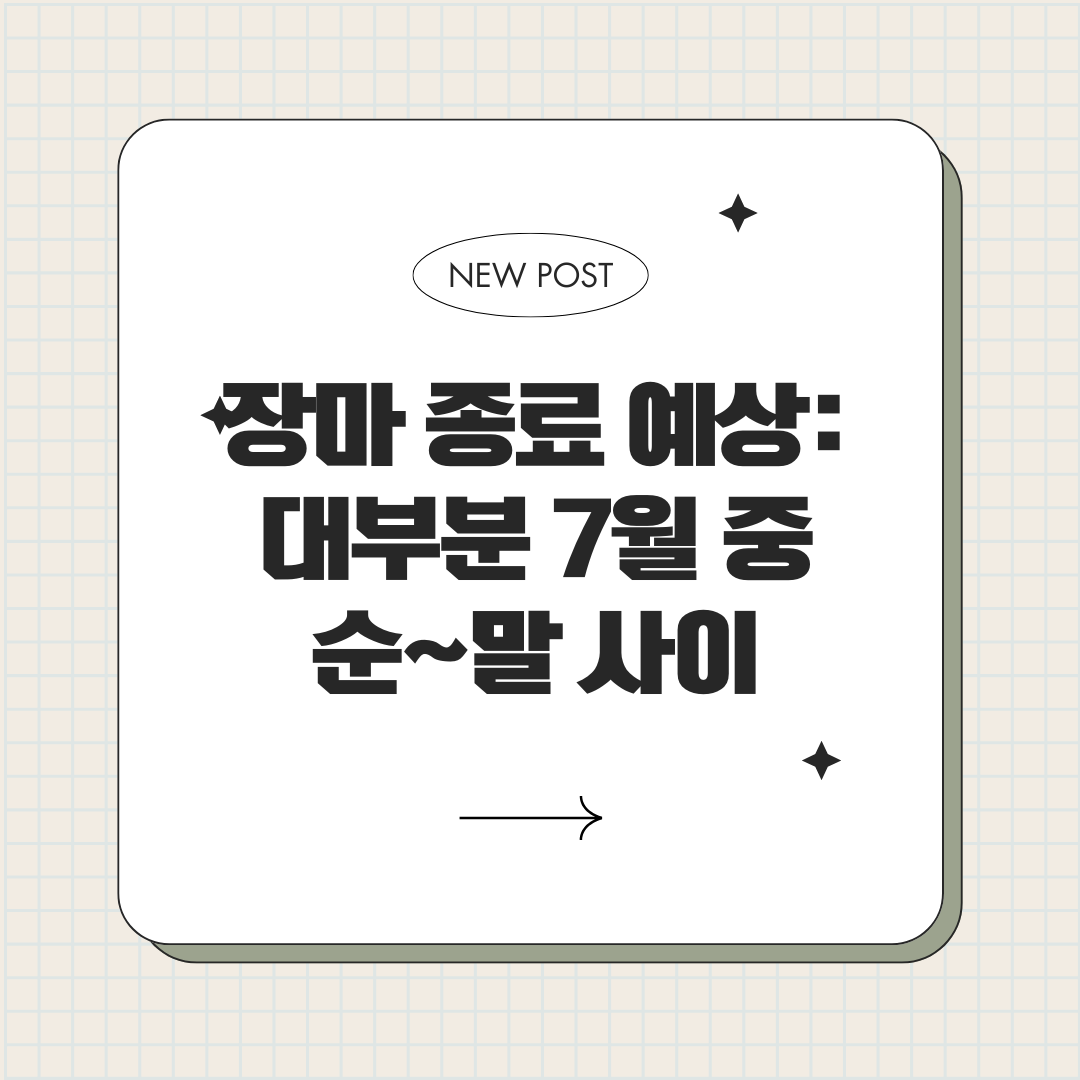 - 장마 종료 예상은 대부분 7월 중순~말 사이가 될 것으로 보입니다.